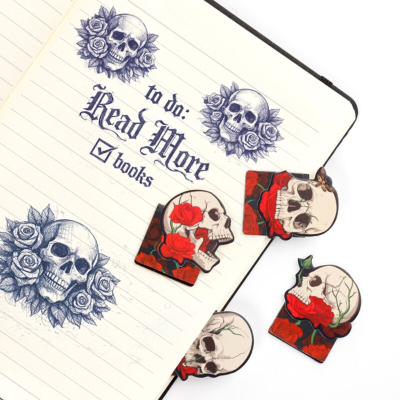 Product beschrijving Schedels & Rozen Magnetische Boekenlegger Set