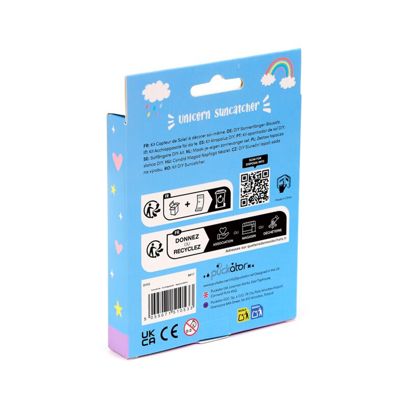 https://www.puckator.nl/diy03-unicorn-magic-verf-je-eigen-suncatcher.htmlDIY03Unicorn Magic Verf je eigen Suncatcher<p>Unicorn Magic Verf je eigen Suncatcher</p><ul><li><strong>Materiaal:</strong> Polystyreen (zonnevanger), verf (pigment), polypropyleen (kwast), polyester (touw)</li><li><strong>Set bevat:</strong> kunststof zonnevanger, touw, kwast en 3 soorten verf.</li><li><strong>CE/UKCA-keurmerk:</strong> Ja</li><li><strong>Niet geschikt voor:</strong> 0 - 3 jaar</li><li><strong>EN71:</strong> Ja</li><li><strong>Productinformatie:</strong> Elke zonnevanger wordt geleverd met instructies voor het maken ervan. Laat de zonnevanger na het schilderen volledig drogen voordat u het touwtje eraan bevestigt en ophangt. Toezicht door een volwassene wordt aanbevolen. Was de verf direct van de oppervlakken om vlekken of beschadigingen te voorkomen.</li></ul><p><strong>Product Bron:</strong></p><ul><li><strong>Zoekt u meer informatie over kopen bij Puckator?</strong> Lees dan onze <a href="/advice-centre" target="_blank" title="Puckator Nederland Klanten Informatie Gids">klanten informatie gids.</a></li></ul>https://www.puckator.nl/media/catalog/product/D/I/DIY03_001_1770029940.jpg1.14instock1.141.1400Puckator000https://www.puckator.nl/media/catalog/product/D/I/DIY03_001_1770029940.jpg/Eenhoorn/Educatief speelgoed & Maak-het-zelf/Unicorn Magic - eenhoorn cadeaus/Wholesale Best Price Offer - Limited Time Promotion/Groothandel Kartonprijs Promotie – Tijdelijke Aanbieding2024-12-24T06:46:47+0000
