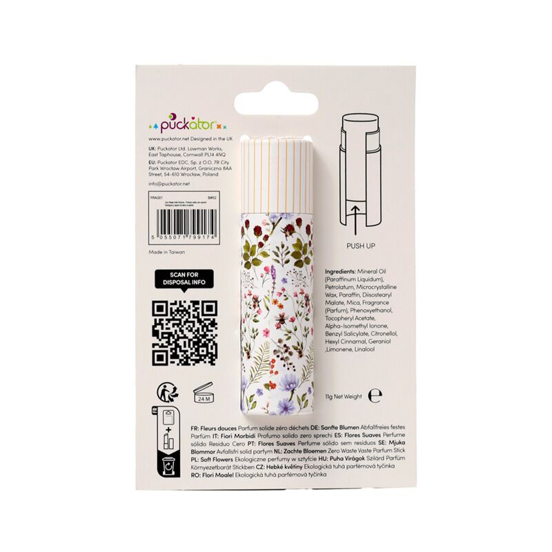 - Materiaal: Geparfumeerde stevige balsem in een kaart- en papierhouder